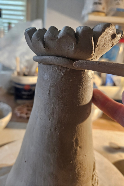 Ich bin keine perfekte Stil-Ikone – ich bin eine Macherin. Perfektes Styling und ein durchgehend makelloses Äußeres gehören einfach nicht zu meinem Alltag. Natürlich lege ich Wert auf Hygiene: Ich dusche jeden Tag, putze meine Zähne, färbe regelmäßig meine grauen Ansätze und ziehe mich sauber an. Aber das Arbeiten mit Ton ist schlichtweg keine saubere Tätigkeit. Mein Arbeitsbereich und meine Kleidung sehen nach einer kreativen Phase oft aus, als hätte ich eine Schlammschlacht veranstaltet.