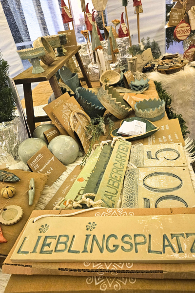Gestalten neuer Artikel: Für eine Kundin meines Mannes durfte ich bereits eine individuelle Hausnummer aus Keramik gestalten. Als Vorbereitung für meinen Weihnachtsmarktstand habe ich verschiedene Größen von Hausnummernschildern getöpfert, um herauszufinden, ob dafür Interesse besteht. Und tatsächlich: Die Resonanz war durchweg positiv! Ich hab nicht nur viel Lob erhalten, sondern auch direkt einen ersten Auftrag bekommen. Persönliche Hausnummernschilder werden daher definitiv bald fester Bestandteil meines Sortiments sein.